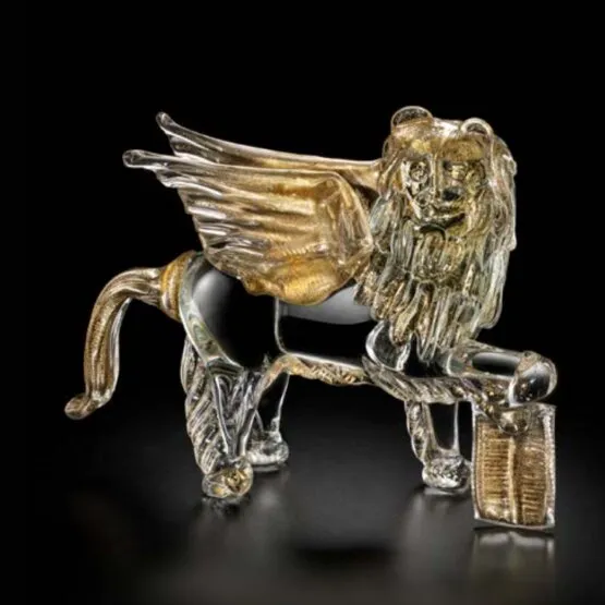 Leone alato, simbolo della repubblica serenissima. Realizzato in cristallo con dettagli in oro 24k.